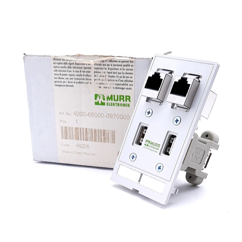 From our inventory we are selling a Murr 4000-68000-0970000 Modlink USB-48VAC/VDC, 500mA, RJ45-30VAC/VDC, 175mA.