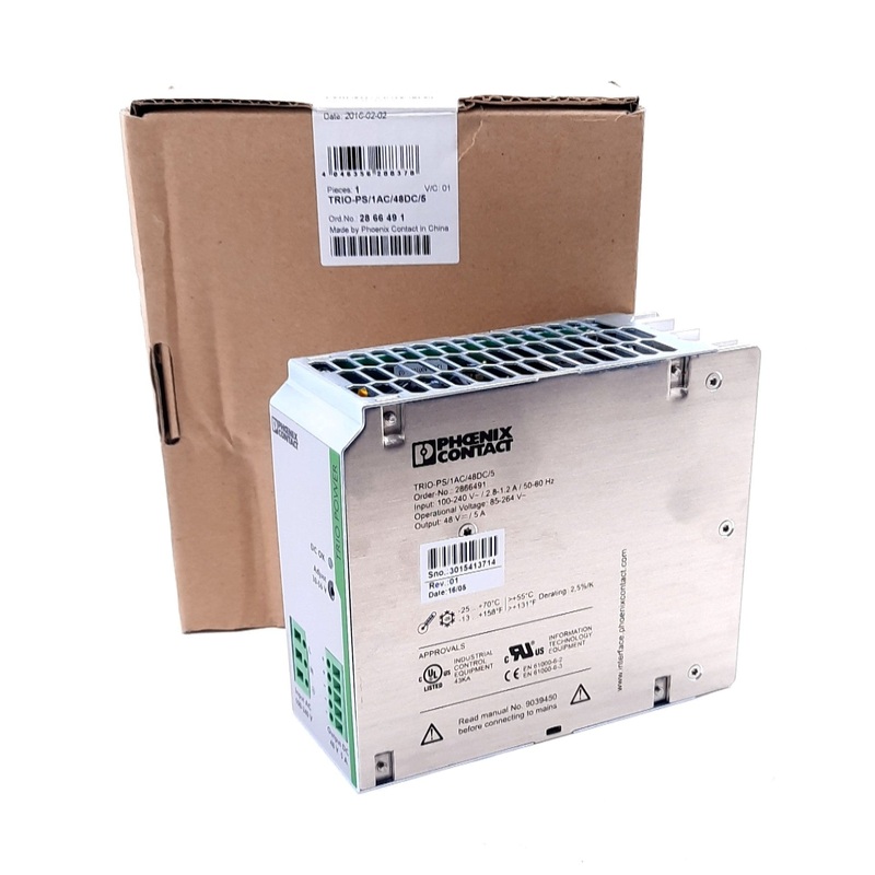 From our inventory we are selling a Phoenix Contact TRIO-PS/1AC/48DC/5 Power Supply 85-264VAC 5A 240W 48VDC.