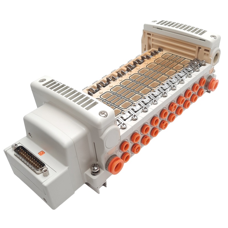 From our inventory we are selling a SMC VV5QC21-10N7FD0-DS Manifold, 10 Stations, 1/4in One-touch, DB25M.