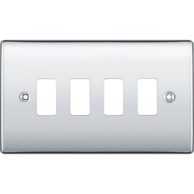 The RNPC4 is a 4G grid plate from the BG Nexus Metal range, finished in polished chrome. The Grid range has been created to give you the flexibility to create bespoke combinations of switches.*Please note this plate requires RFR34 grid frame.