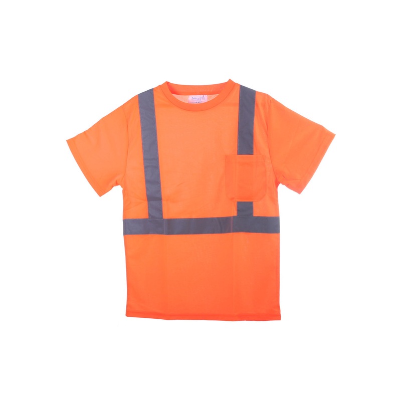 Class II Orange T-Shirt 98-2500-O Size XL 100% Polyester With Silver Reflectors One Pocket High Visibility with 100% ANSI Fluorescent Standard Solid Front and back with 2" ANSI Silver Reflective Stripes