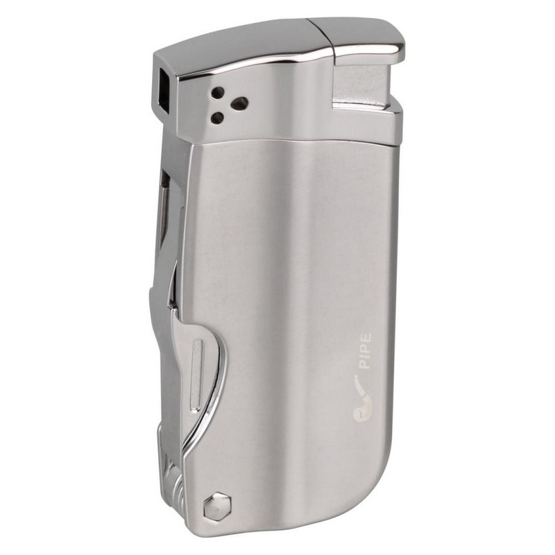 PASSATORETitan Pibe Lighter med Piezo Tnding i farvenSlv med integreret Pibevrktj – lkker stor lighter med stor knap.