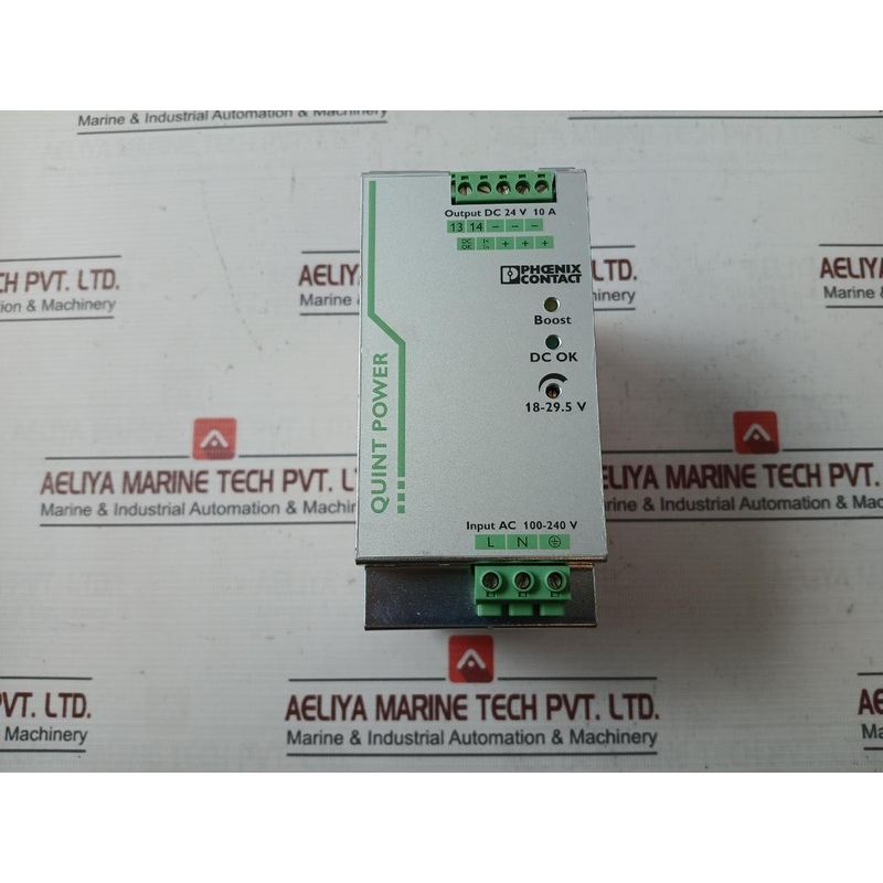 Phoenix Contact Quint-ps/1Ac/24Dc/10 Switching Power Supply 50-60Hz A Rev.07Made By Phoenix ContactQuint PowerQuint-ps/1Ac/24Dc/1018-29.5 VOrder No: 2866763Input: 100-240V~/50-60Hz/4.0-1.7 A110-250V ---/3.4-1.5AOperational Voltage: 85-264V~/90-350V--- (Ul5