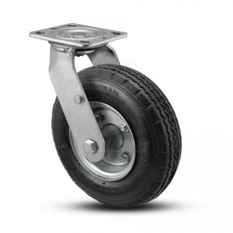Fastening Type:Top PlateFinish:ZincWheel Diameter:10.00"Tread Width:4.10"Wheel Type:PneumaticBearing Type:BallFastening Size:4" x 4.5"Bolt Hole Spacing:2-5/8" to 3" x 3" to 3-5/8"Mount Height:12.0000"Mounting Bolt Size:3/8"Swivel Radius:7.6875"Tread Info:P