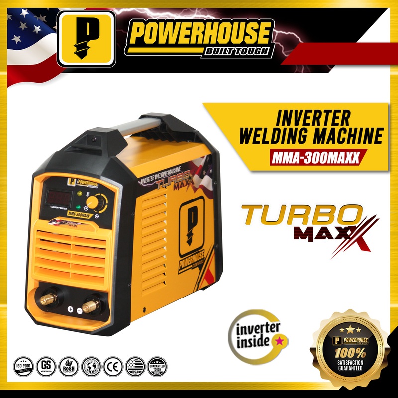Specifications:Power Voltage (V): 220V / 60HzMax Input Power (KVA): 9Efficiency (%): 85Max No Load Voltage (V): 75Current Range (A): 20-300Duty Cycle: 80%Usable Electrodes: 1.6-5.0mmInsulation Class: FProtection Degree: IP21S