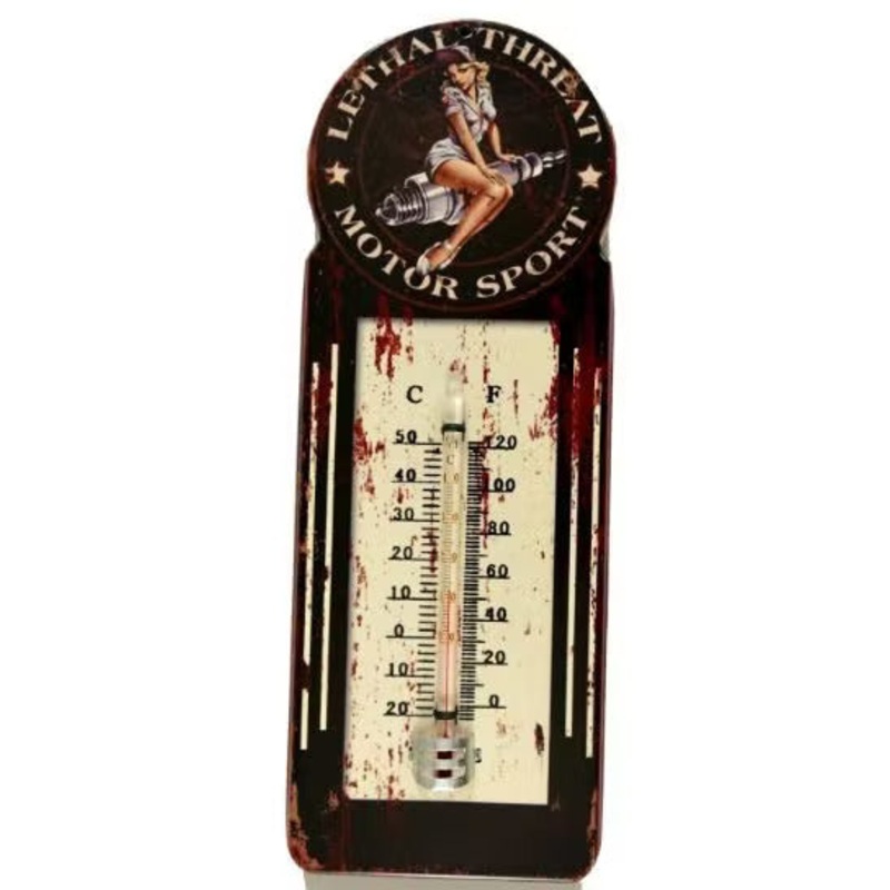 Retroworld Lethal Threat Motor Sport Pin-up Termometer – perfekt til garagen eller vrkstedet – ude eller inde.