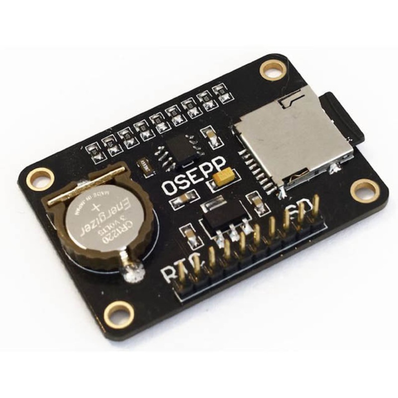 The Realtime clock & microSD breakout keeps accurate time and supports external memory through a microSD. The breakout features the DS1307 Realtime clock with battery holder for reliable time readings in case of breakout power outage. The RTC/SD Breakout also features a microSD card slot adding external memory to read/write pictures text files audio and much more. Add accurate time measurement and external memory to your next Arduino project!