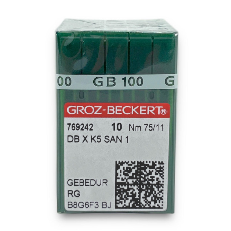 Groz-Beckert DBXK5 SAN1, with its special design and a titanium nitride coating, offers highest stability and maximum resistance against wear. They are highly recommended when embroidering thick or very sturdy materials, such as leather or caps. These needles feature a titanium nitride coating, which is 2.5 times harder than steel. This greatly improves needle stability and reduces needle deflection and breakage.