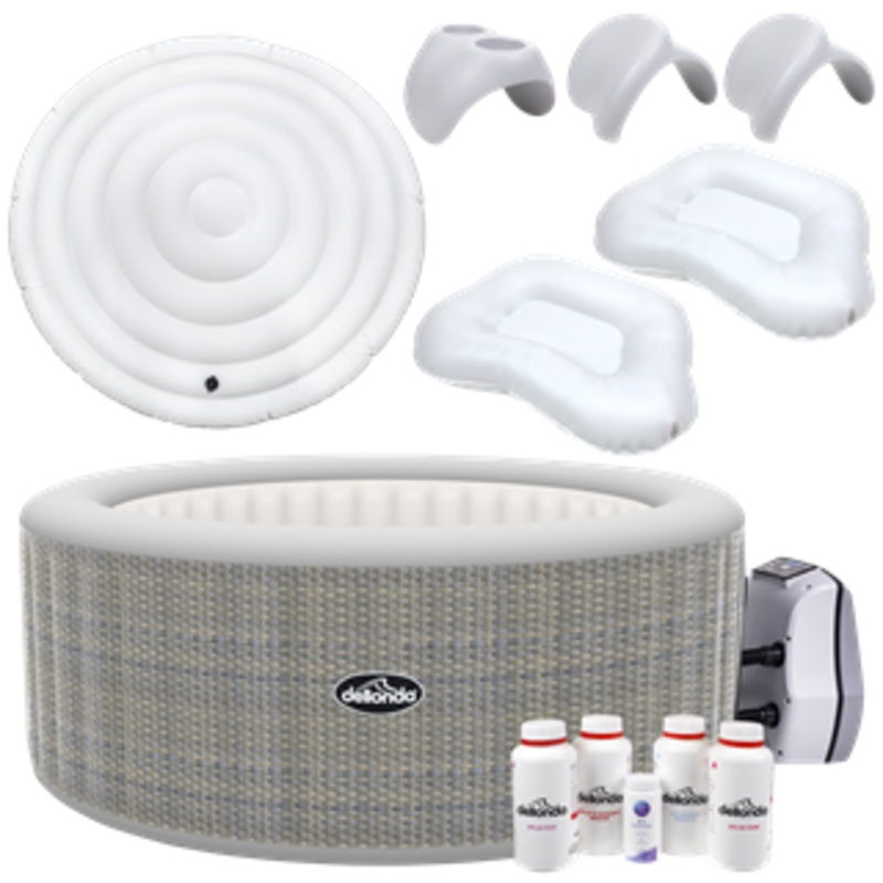 FULL STARTER KIT – Includes Inflatable Lid, Inflatable Cushion, 2 x Headrests, Drinks Holder, 1L Cartridge Cleaner, 500g Chlorine Granules, 500g pH Plus, 750g Dry Acid, 500ml Foam Down & Test Strips.
