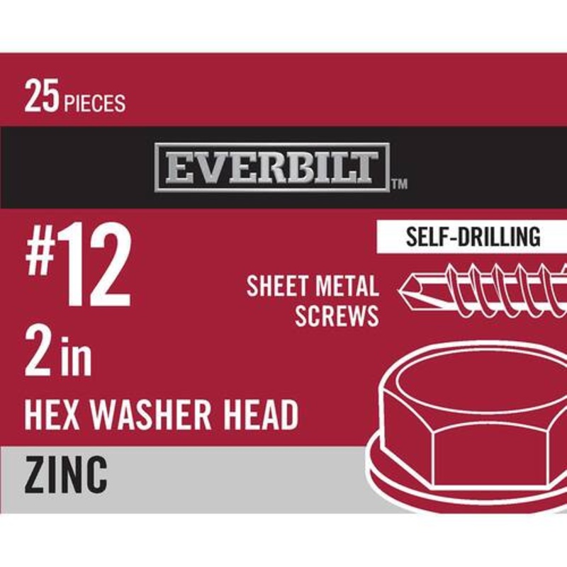 Sheet Metal Screws #12 2 in Hex Head Hex Zinc Plated (25-Pack)
