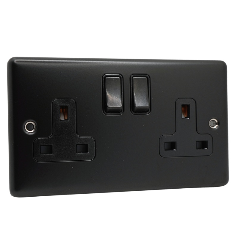 SHP Electrical Round Edge Matt Black Range 2 GANG 13AMP DP SWITCHED SOCKET MATT BLACK RANGE BLACK TRIM