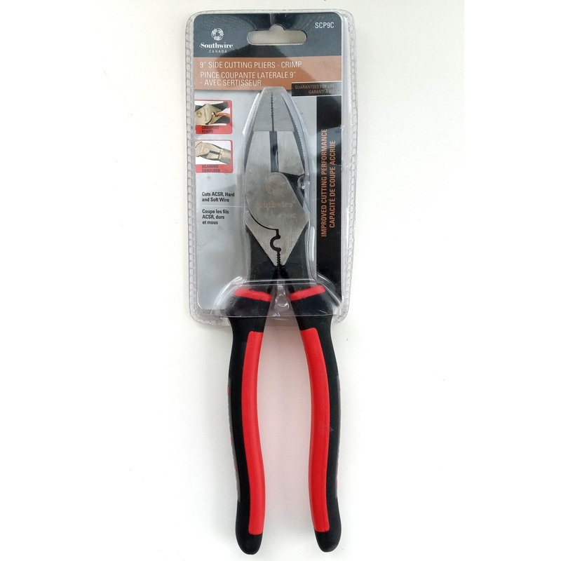 Southwire SCP9C Side Cutting Pliers with Crimper, 9-Inch Induction hardened cutting blades ensure efficient and lasting cutting surfaces for hard and soft wire Curved handle and ergonomic molded grip for comfortable use Crimping die for non-insulated conne