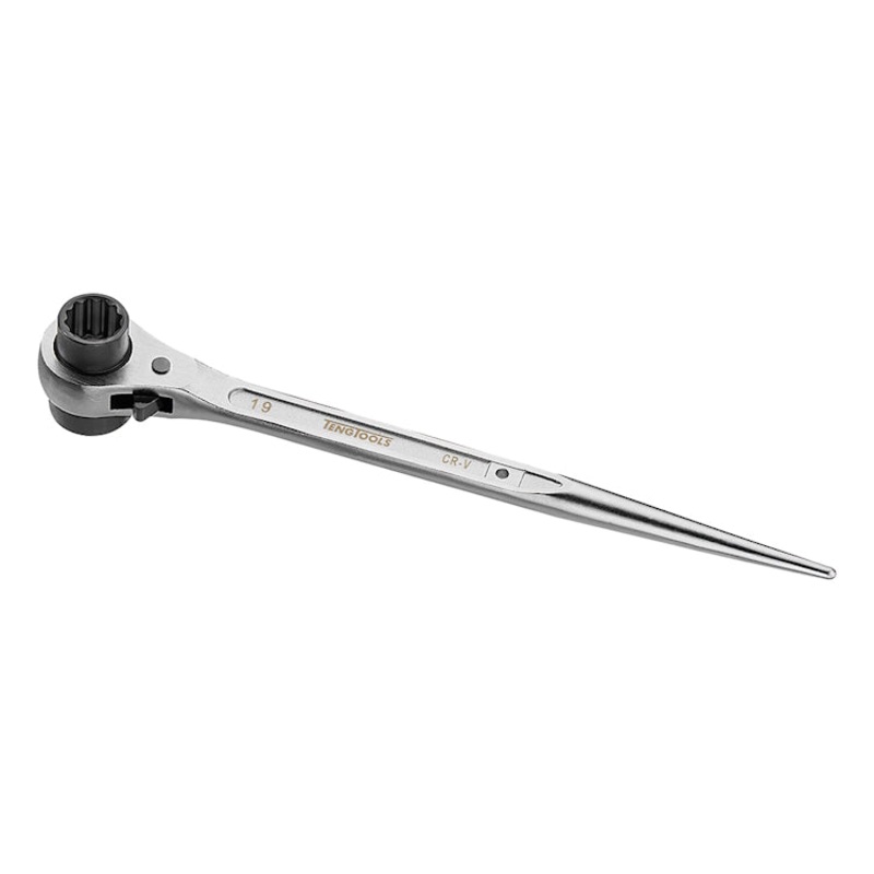 For use in constructionIdeal for scaffolding, pallet racking, shelving systems and metal panel erection2 sizes in one with 12 point double ended sockets32 teeth for extra strength and use in outdoor sitesFlip reverse for quickly changing between tightening