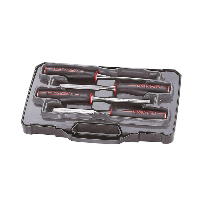 4 piece chisel set containing sizes 6,12,18 & 25mm chisels The chisels are finely ground and lacquer coated for corrosion protection and feature impact resistant soft grip handles with percussion caps. Each chisel has a plastic blade cover and the set is s