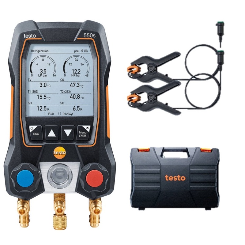 • Testo 550s Smart Kit – Smart digital manifold with wireless clamp temperature probes
