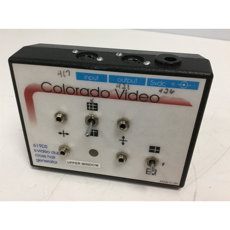 Item Condition: UsedSKU: SB-104386ST18-6-FFrom our inventory we are selling a Colorado Video 619DS S-Video Dual Cross Hair Generator 3.25"x4.38"x1.5" 5V DC. Specifications:Model #: 619DS More Information: S-Video Dual Cross Hair Generator Dimensions:3.25"x