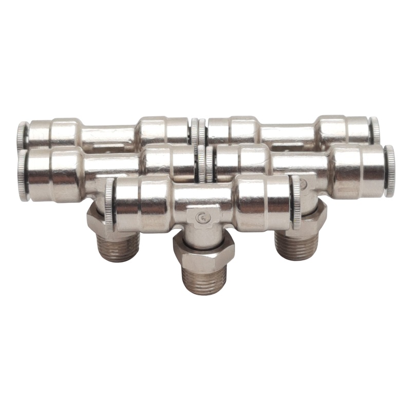 From our inventory we are selling a Lot of 5 Camozzi P6430-04-02 Swivel Branch Tee, 1/4in Tube x 1/8in NPT, 16bar.