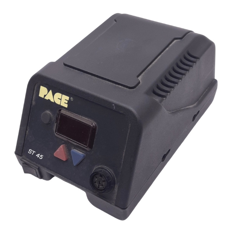 From our inventory we are selling a Pace ST 45 7008-0229-01 SensaTemp Soldering Station, 400-850F, 115VAC In, 90W.