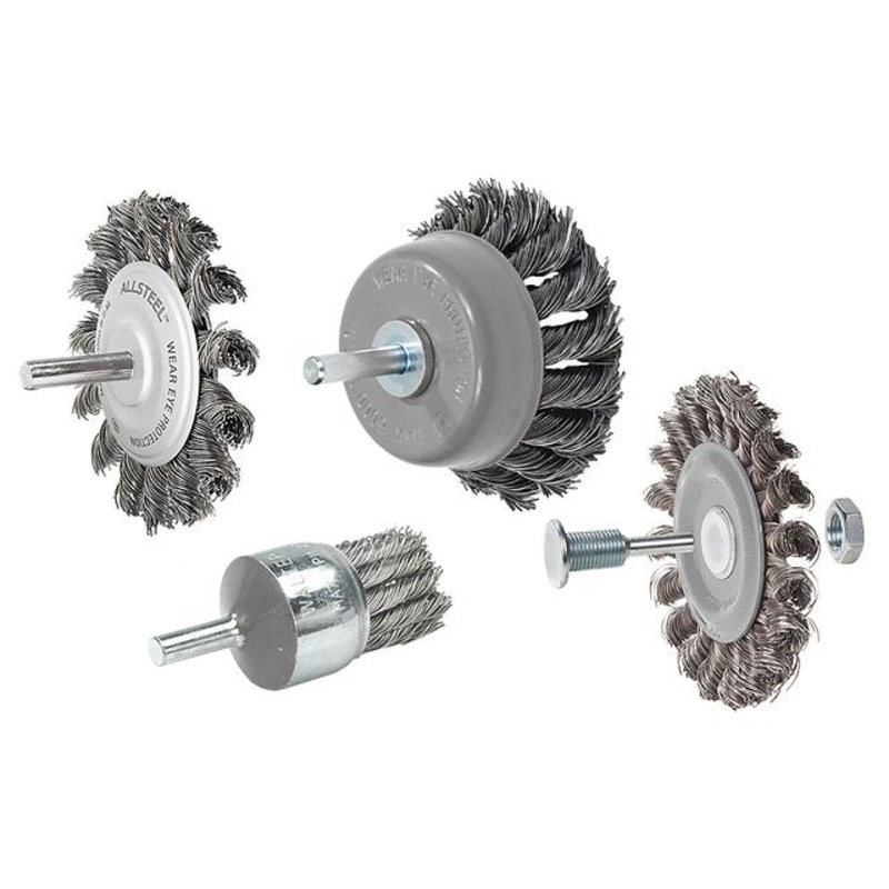 Walter 09C020 ALLSTEEL 1-1/8" Knot-Twisted Mounted Straight Wire End Brush (1 Brush)ALLSTEEL wire brushes are designed to provide exceptional value and deliver consistent and reliable surface cleaning performance on a variety of metals. Through a strict qu