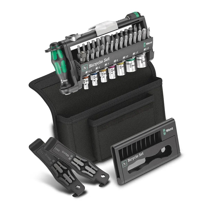 Bicycle tool set with ratchet, bit, sockets and a bit hand-holder in a compact space. Perfect as a universal companion with a variety of screwdriving challenges. High quality bit hand-holder with Kraftform Plus handle for comfortably ergonomic work, which