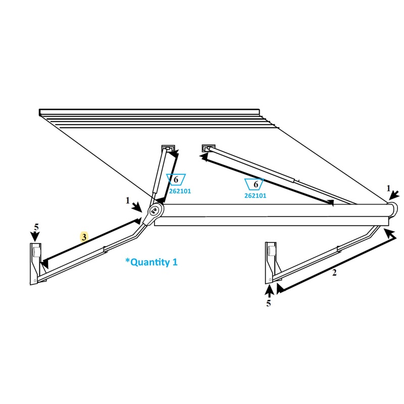Zip Dee Complete Gas Rafter Assembly for Relax 12V Electric Contour Awning.